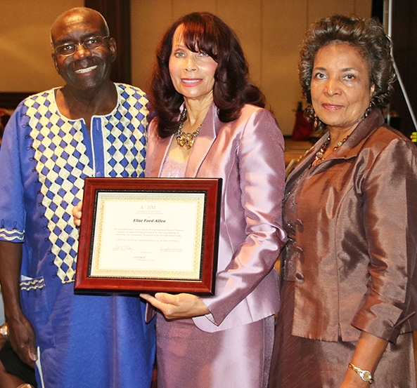 Award Acceptance for Elise Ford Allen for the 7th Annual Gale "Honoring our Heritage". From left to Right Ocheng Jany, Linda Allen B. Hollis, and Ernestine Lawrence. Photo credit James Bass.